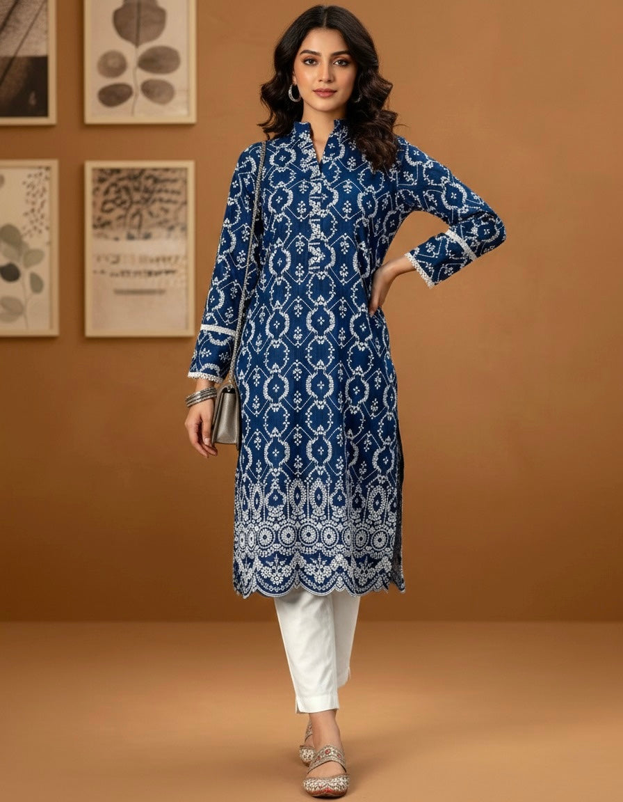Schiffli Embroidered Chikankari Ready to Wear Kurti